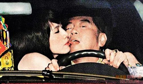 看看这两人在车上的疯狂相,高国华不忘腾出右手揽着陈子璇亲密地脸贴脸,接着又是舌吻。